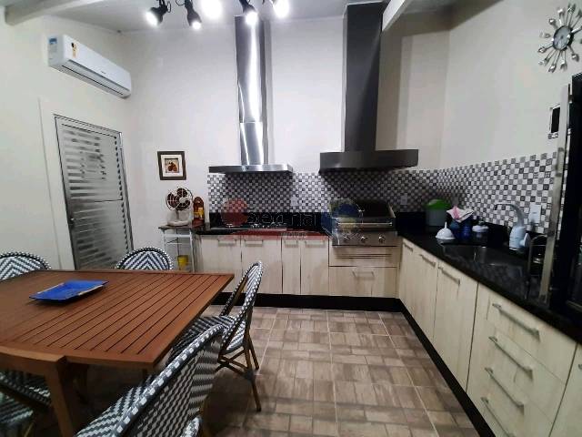 Imóvel com 2 Dormitórios, 1 Suíte, com Closet, 1 Banheiro, Lavabo, Sala de Estar, Copa, Cozinha, gargem p/ 4 carros sendo 2 cobertas,área gourmet c/Churrasqueira a gás coifa de exaustâo , cooktop , wc p/ empregada.Todos comodos com ar condicionado.Ar,marios embutidos .