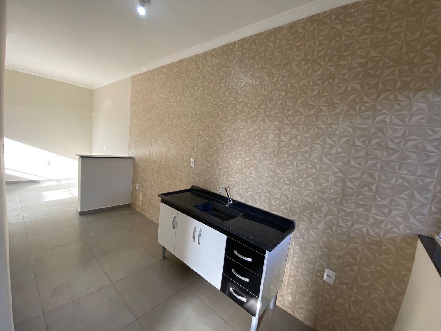 Imóvel NOVO, garagem coberta para 1 carro, 1 sala de estar, 1 cozinha, 1 área de serviço, 2 dormitórios e 1 banheiro. Acabamento em piso porcelanato e teto em laje. Portão automático incluso.