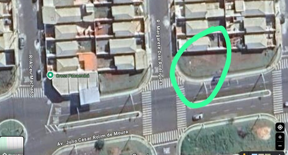 Terreno de esquina para fins comerciais com área total de 285 m2;