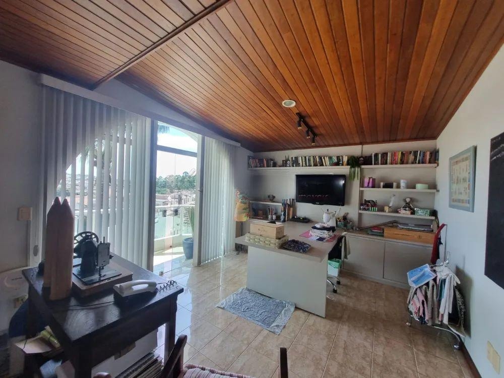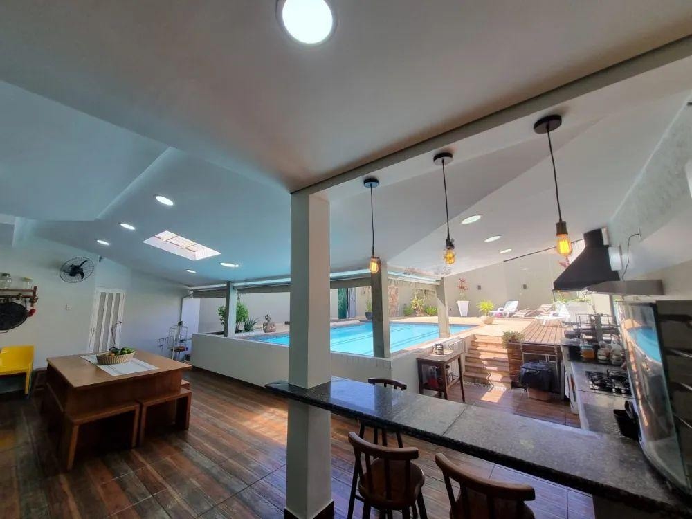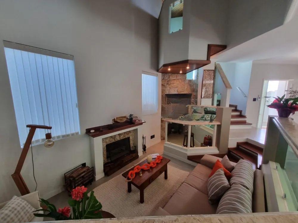 Piso inferior: sala de tv,sala de estar com lareira, sala de jantar, sala de almoço, cozinha, lavabo,1 wc, lavanderia, despensa, área gourmet com churrasqueira, piscina, edícula com sala, quarto e banheiro, garagem coberta para 02 carros.