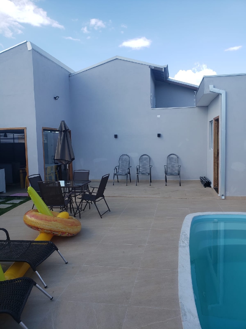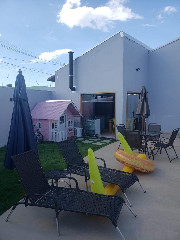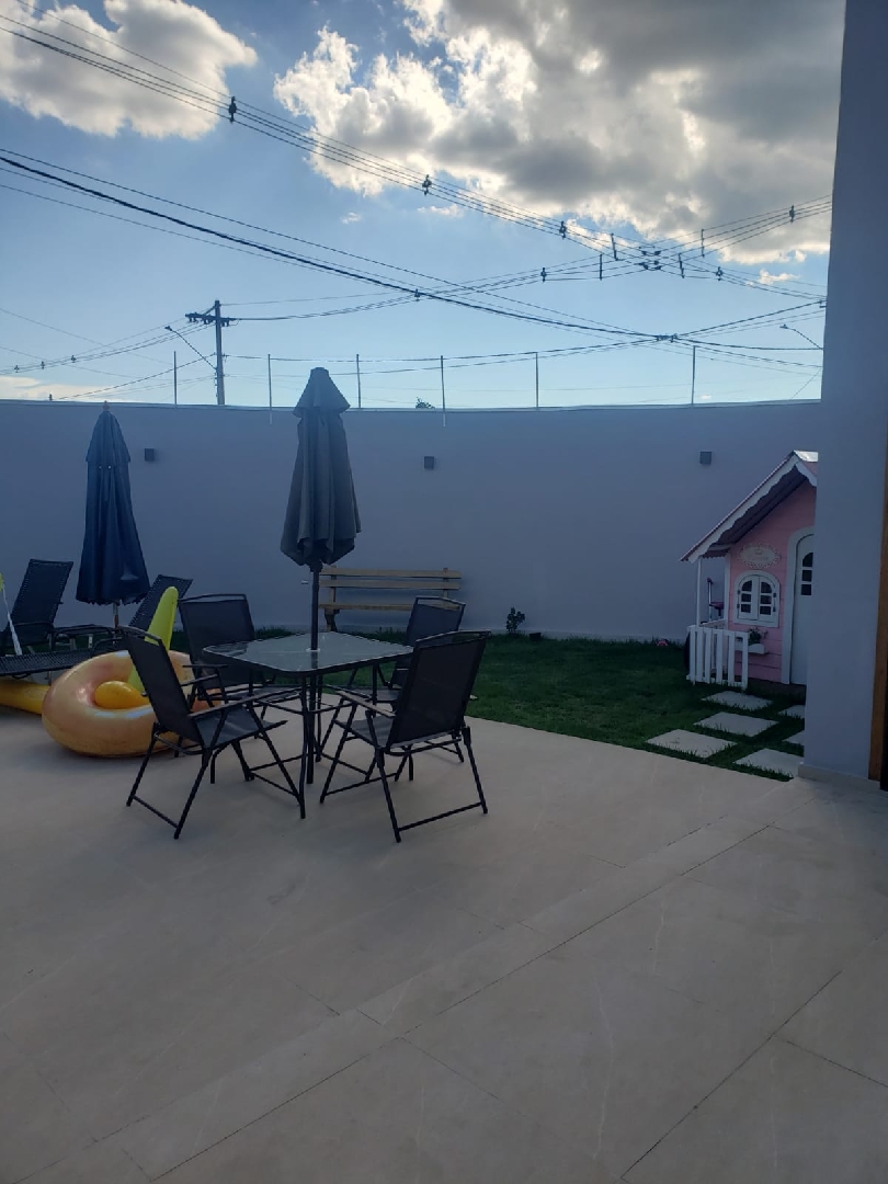 Ar condicionado nos 3 quartos e 1 na sala, cerca elétrica, portão eletrônico com câmera e alarme.