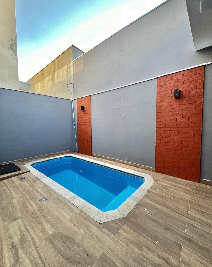 Pé direito alto, área gourmet e piscina.