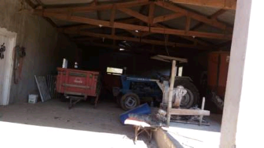 São 4 casas, 3 barracões, estrutura para ordenha montada, 3 tratores com emplementos, porteira fechada