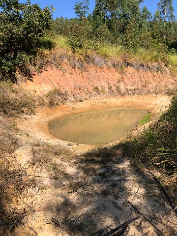 Tem 2 pequenas represas c/ mina em volta destas , estão plantados árvores nativas.